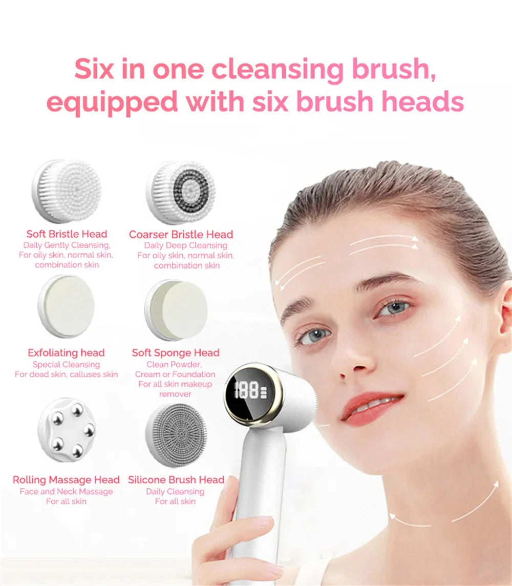 Escova de Limpeza Elétrica 6 em 1 com Tecnologia Ultrassônica Rotativa Transforme sua rotina de cuidados com a pele com esta escova facial elétrica multifuncional. Equipada com 6 modos de limpeza, oferece limpeza profunda que remove impurezas, resíduos e células mortas sem agressividade. A tecnologia ultrassônica rotativa penetra nos poros, eliminando cravos e deixando a pele revitalizada e radiante. Ideal para todos os tipos de pele, combina limpeza eficaz com massagem facial relaxante e esfoliação suave. Certificada internacionalmente (CE, FCC, RoHS, PSE, KC, CCC), possui classificação de impermeabilidade IPX-7, permitindo uso seguro no banheiro. Carregamento via USB oferece praticidade e portabilidade. Marca KEMOKO | Bateria não incluída | Origem: China | Suporta venda no atacado e dropshipping