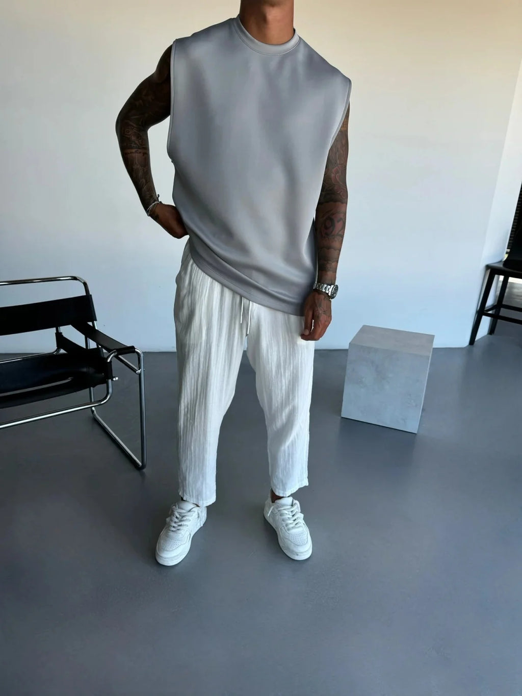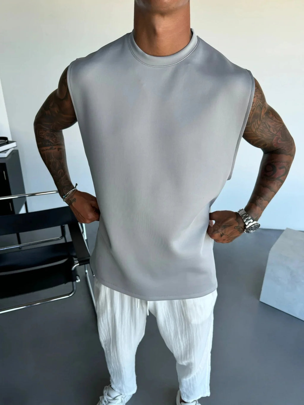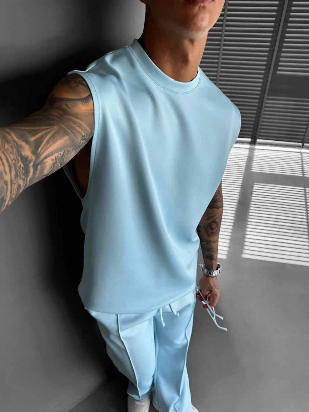 ESPECIFICAÇÕES Cena Aplicável: Viajando Estação Aplicável: Verão Nome da marca: NoEnName_Null CN: Jiangxi Tipo de fecho: Nenhum Colarinho: Gola O Crafto de Tecelagem: Tricô Gênero: HOMENS Produtos Químicos de Alta Preocupação: Nenhum Material: POLIÉSTER Origem: China Continental Tipo de Fecho da Calça: Cordão Tipo de Padrão: Sólido Local de Origem: China (Continental) Comprimento da Manga (cm): sem manga Estilo: Casual Espessura: Fino se totalmente aberto: Não