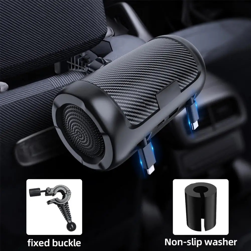 O Carregador Multifuncional Retrátil para Apoio de Cabeça Traseiro 4 em 1 é um adaptador rápido de 65W, ideal para carregar notebooks, telefones e iPads durante viagens. Projetado para se fixar facilmente no encosto do banco traseiro, oferece conveniência e organização, eliminando cabos soltos no carro. Com voltagem de 12V, este acessório prático e compacto transforma seu veículo em um espaço eficiente para manter seus dispositivos sempre carregados, garantindo conforto e funcionalidade para todos os passageiros. Produto importado da China, sem componentes químicos nocivos.