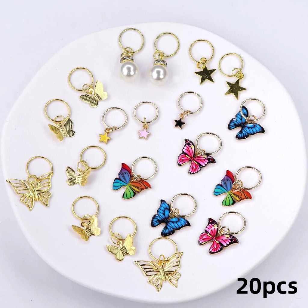 Conjunto de 20 clipes trançados em formato de borboleta, confeccionados em liga de zinco com acabamento brilhante e perolado. Estes acessórios para cabelo combinam elegância e funcionalidade, apresentando detalhes coloridos que adicionam um toque vibrante ao seu visual. Ideais para penteados trançados, dreadlocks ou simplesmente para prender mechas soltas com estilo. Marca XCL, origem China, material de qualidade sem substâncias químicas prejudiciais. Perfeito para quem busca acessórios fashion versáteis e duráveis.