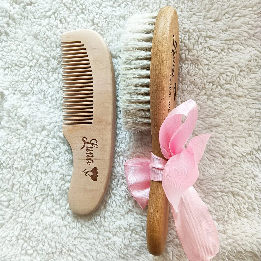 Escova de cabelo personalizada para bebê, confeccionada em lã pura e madeira natural, ideal para massagear delicadamente o couro cabeludo do recém-nascido. Este pente de madeira combina funcionalidade com elegância, oferecendo uma solução suave e segura para a higiene capilar infantil. Personalizável com gravação, torna-se um presente memorável para chás de bebê, batizados e outras celebrações especiais. Adequado para crianças de 0 a 6 anos, o conjunto inclui tudo que você precisa para começar. Fabricado com materiais naturais e livres de produtos químicos prejudiciais, este acessório é perfeito para pais que buscam qualidade e cuidado genuíno para seus pequenos. Um presente único que combina praticidade, beleza e personalização em um só produto.
