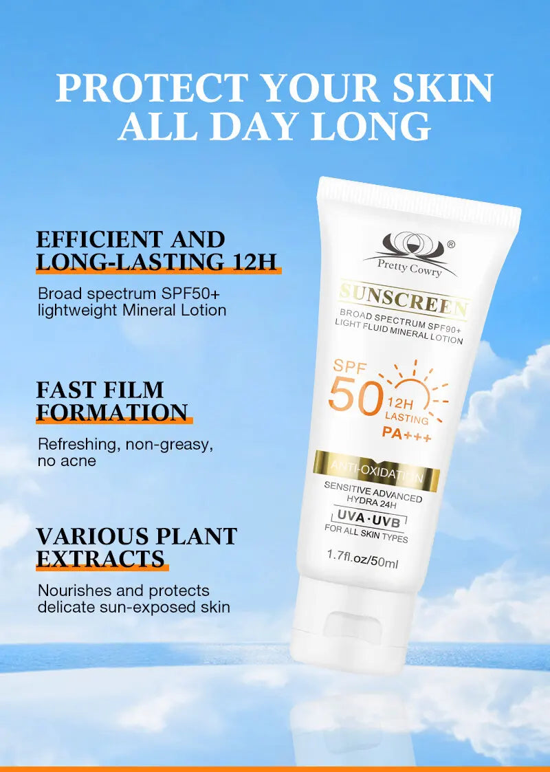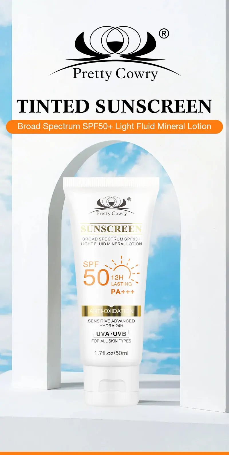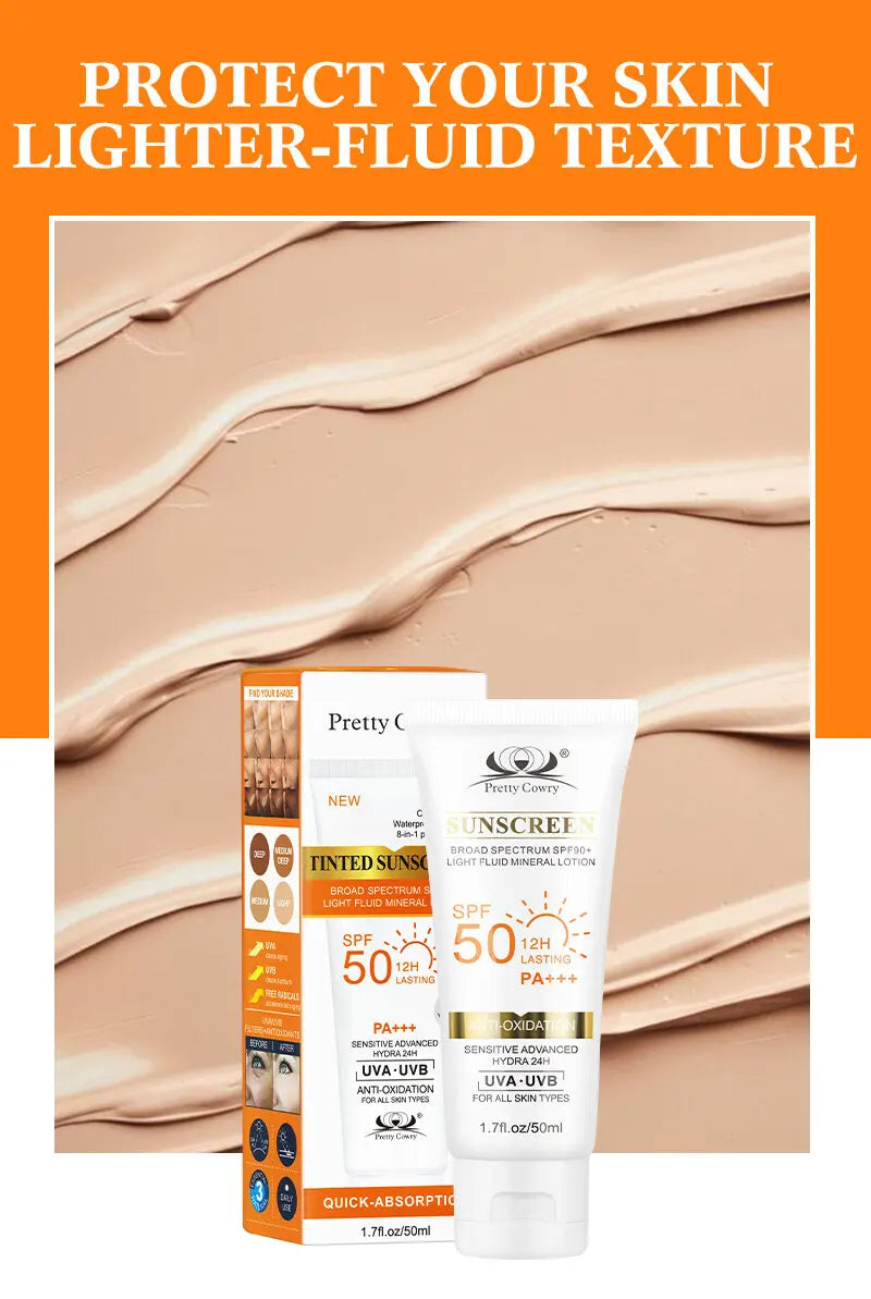 Protetor Solar Tintado FPS 50+ Hidratante Proteção UV para Rosto e Corpo Bloqueador Solar Leve Antienvelhecimento À Prova D'Água Clareador Uso Diário